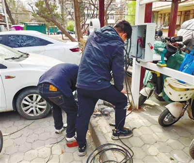 近日接到市民反映,南开区王顶堤街林苑西里社区因没有固定车位,居民无法安装新能源汽车充电桩,但小区通道边上却出现了一个充电桩,疑似私自安装。