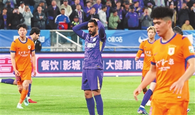 本报讯(记者 顾颖 摄影 崔跃勇)1:2不敌山东泰山队,天津津门虎队昨天晚上在泰达足球场虽拼尽全力,但非常遗憾地负于对手。下半场1:1的局面下,谢蒂内罚丢点球错失再度领先的绝佳机会,成为本场比赛最关键的“胜负手”。